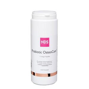NDS Probiotic Osteocare er et kosttilskudd spekket med melkesyrebakterier. Pulverproduktet inneholder 10 utvalgte stammer av tarmbakterier som bidrar til en balansert tarmflora. Det inneholder også mineraler og gunstige kollagenpeptider som bidrar til hudens elastisitet. Med alderen avtar kollagenproduksjonen, og det kan derfor være en fordel å supplere med ekstra kollagenpeptider for å bidra til å gjenopprette huden.
