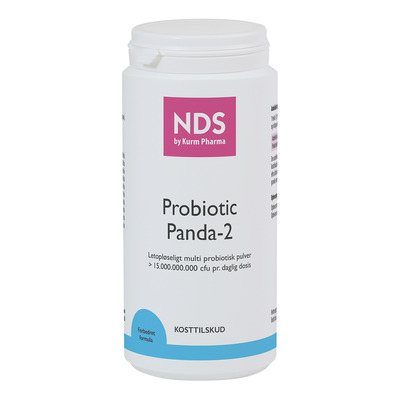 NDS Probiotic Panda-2 er et mildt og skånsomt kosttilskudd i pulverform, utviklet for deg som ønsker en skånsom løsning med utvalgte bakteriekulturer. Tilskuddet inneholder melkesyrebakterier fra Bifidobacterium breve (M-16V), Lactobacillus casei og Lactococcus lactis LI-23