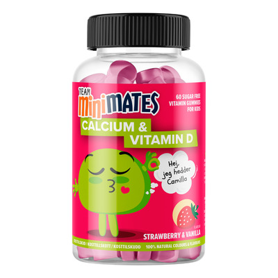 Team Minimates Calcium & D med jordbær- og vaniljesmak er gummies med kalsium og vitamin D