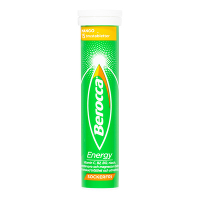 Berocca Energy Every day Mango er et kosttilskudd som består av 8 ulike B- og C-vitaminer samt magnesium og sink. Produktet er sukkerfritt og har en frisk og deilig mangosmak når det løses opp i et glass vann. Berocca Performance er en brusetablett.