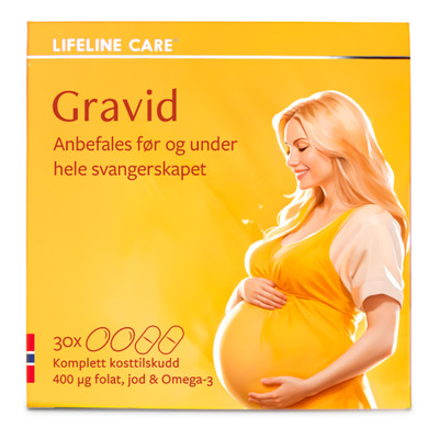 Lifeline Care Gravid er et kosttilskudd utviklet spesielt for kvinner som planlegger graviditet eller allerede er gravide. Produktet dekker dagsbehovet for viktige næringsstoffer som omega-3, vitaminer og mineraler, og er tilpasset Helsedirektoratets anbefalinger for gravide.