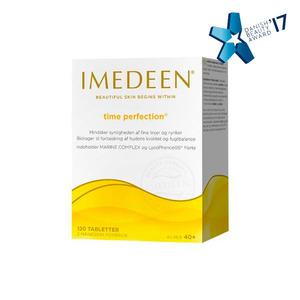 Imedeen Time Perfection er et kosttilskudd utviklet for kvinner over 40 år. Produktet inneholder IMEDEENs ingrediens Marine Complex, samt LycoPhence GS Forte - en kombinasjon av tomatekstrakt, druekjerneekstrakt, sink og C-vitamin. Vitamin C bidrar til normal dannelse av kollagen, som er viktig for normal hudfunksjon, mens sink bidrar til å opprettholde normal hud.