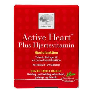 Active Heart Plus Heart Vitamin er en urtetablett basert på hvitløk, galangastamme, svart hvitløk, olivenblad, hagtornfrukt og fransk maritim furubark samt svartkumminolje. I tillegg inneholder tabletten tiamin, som bidrar til normal hjertefunksjon.