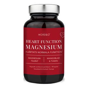 NORDBO Hjertefunksjonsmagnesium inneholder en kombinasjon av tiamin, magnesiumtaurat og CareFlow®. Tiamin er et vannløselig koenzym som ikke kan produseres av kroppen selv, men må tilføres gjennom kosten. Tiamin finnes blant annet i hjertet og hjernen og bidrar til hjertets normale funksjon. Magnesiumtaurat består av magnesium bundet til aminosyren taurin. Taurin er den aminosyren som oftest finnes i hjertet. Magnesium bidrar til normal muskelfunksjon (hjertet er en muskel). CareFlow® er et mangoekstrakt som er testet i en klinisk studie på mikrosirkulasjon.