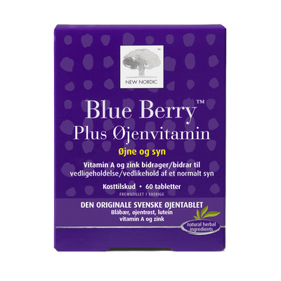 Øynene våre trenger spesielle næringsstoffer for å fungere optimalt. De spesielt utvalgte mikronæringsstoffene og urteekstraktene i hver tablett av New Nordic Blue Berry Plus gir næring til øynene dine. Tabletten er produsert i Sverige og inneholder blåbær, øyentrøst og tagetesblomstekstrakt - som er produsert i en spesiell prosess for å standardisere luteininnholdet. I tillegg bidrar innholdet av vitamin A og sink til å opprettholde et normalt syn.