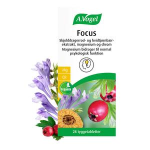 A.Vogel Focus er et vegansk kosttilskudd som kan brukes når du trenger å konsentrere deg eller roe deg ned i krevende situasjoner som tidsfrister, presentasjoner, store arrangementer eller eksamener. Kosttilskuddet henter hjelp fra planteverdenen og inneholder en unik kombinasjon av planter og mineraler som ekstrakt av skjoldbruskkjertelrot, ekstrakt av hagtornbær, magnesium og krom.