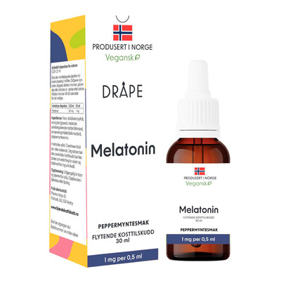 Dråpe Vegansk Melatonin Peppermynte er et flytende kosttilskudd med melatonin og mild smak av peppermynte. Produktet er utviklet for voksne som ønsker en enkel og fleksibel måte å innta melatonin på.