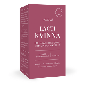 NORDBO LactiKvinne er et høykonsentrert melkesyrebakterieprodukt med et bredt utvalg av stammer. Hver kapsel inneholder garantert 50 milliarder bakterier (ved utløp) fordelt på 11 stammer. Produktet er formulert til kvinner som opplever ubalanser både i tarmen, vaginalt samt i urinveiene og inneholder derfor hele 90% Lactobacillus bakterier.