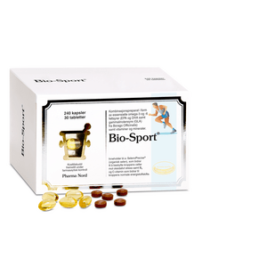 Bio-Sport fra Pharma Nord er et unikt sportstilskudd som består av en kombinasjon av både kapsler og tabletter. Kapslene inneholder essensielle omega-3-fettsyrer i form av lettopptakelige frie fettsyrer samt gammalinolensyre. Tablettene inneholder vitaminer og mineraler med antioksidantvirkninger i kroppen, og de hjelper deg med å holde deg fysisk aktiv, også når du belaster kroppen maksimalt.