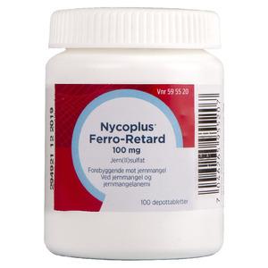 Nycoplus Ferro-Retard er et jernpreparat som inneholder jern(II)-sulfat og brukes til å behandle og forebygge jernmangel og jernmangelanemi hos voksne og barn over 12 år. Tabletten frigjør jernet gradvis, slik at det tas opp jevnt i blodet over lengre tid. Dette gjør at kroppen utnytter jernet bedre og reduserer risikoen for bivirkninger som ubehag og magesmerter, sammenlignet med vanlige jerntabletter. Nycoplus Ferro-Retard kan også brukes forebyggende, særlig for blodgivere og personer som har gjennomgått visse typer magesåroperasjoner.