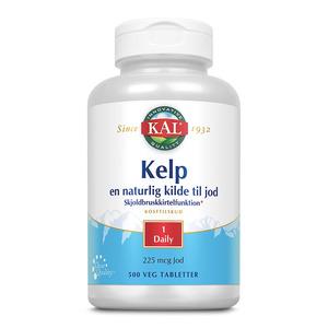 KAL Kelp er et kosttilskudd i tablettform basert på brunalgen Laminaria digitata - også kjent som tare. Tare er en naturlig kilde til mineralet jod, som bidrar til normal produksjon av skjoldbruskkjertelhormoner og normal skjoldbruskkjertelfunksjon. I tillegg bidrar jod også til normal kognitiv funksjon og normal energiomsetning. Per dagsdose - 1 tablett - får du i deg 225 µg jod, noe som tilsvarer 150 % RI for voksne.