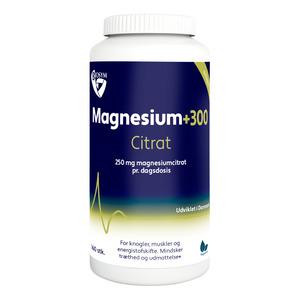 Biosym Magnesium+300 Citrate inneholder 250 mg magnesium per dagsdose i form av magnesiumsitrat, som er en organisk form bundet til sitronsyre. Dette bidrar til et godt opptak i kroppen. Magnesium bidrar til normal muskelfunksjon, normal energiomsetning og reduserer tretthet og utmattelse. Det bidrar også til nervesystemets normale funksjon og en normal psykologisk funksjon. Dette kosttilskuddet er utviklet i Danmark av Biosyms spesialister med spesielt fokus på behovene til danske forbrukere.