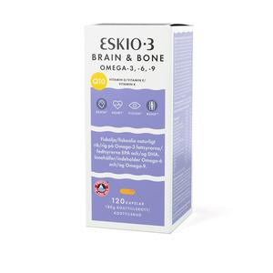 ESKIO-3 Brain & Bone inneholder en unik kombinasjon av omega-3,- 6 og -9 fettsyrer, vitamin D, K og E samt Q10. Utover å inneholde ren og bærekraftig fiskeolje med et naturlig innhold av omega-3, er Brain & Bone tilsatt vitamin D og K som bidrar til å vedlikeholde normale knokler - mens vitamin E bidrar til å beskytte cellene mot oksidativt stress.
