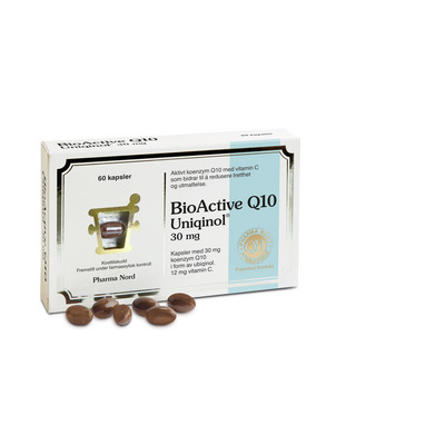 BioActive Q10 Uniqinol er kapsler med den aktive formen av Q10 (ubiqinol), oppløst i vegetabilsk olje. Koenzym Q10 er et stoff vi har naturlig i kroppen, men produksjonen avtar med årene. Vi får også Q10 fra kosten vår, blant annet fra oksekjøtt, svinekoteletter, sardiner, sild og soyaolje.