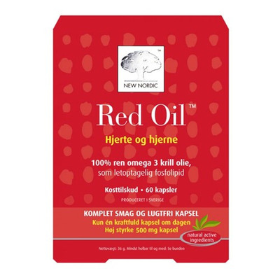Red Oil™ er en rik kilde til EPA og DHA, som bidrar til normal hjertefunksjon*. Det høye innholdet av DHA bidrar til normal hjernefunksjon og syn**. I motsetning til omega 3 fra fiskeolje, er omega 3 fra krill bundet i en fosfolipidform. Omega 3 i denne formen inkorporeres mer effektivt i kroppens cellemembraner enn triglyserider fra fiskeolje. Krillolje inneholder naturlig antioksidanten astaxanthin. Den motvirker harskning og holder oljen frisk lenger, samtidig som den gir oljen dens karakteristiske naturlige røde farge. Red Oil-kapselen er laget med en ny innkapslingsteknologi som gjør den helt luktfri. Red Oil er dessuten vannløselig, noe som gjør at oljen løses raskt opp i magesekken, slik at man unngår de velkjente "fiskebæsjene". Red Oil-kapselen er liten, rød og kraftig.