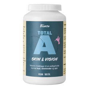 Biorto Total A er et plantebasert tilskudd av vitamin A og sink for deg som ønsker å opprettholde et normalt immunforsvar samt normal hud, syn og fungerende slimhinner. Vitamin A bidrar til å opprettholde et normalt fungerende immunsystem og til å opprettholde normal hud, slimhinner og syn, mens sink bidrar til en normal omsetning av vitamin A. Med Total A får du verken unødvendige hjelpemidler eller tilsetningsstoffer.