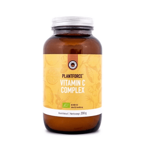 Vitamin C Complex fra Plantforce er et kosttilskudd i pulverform basert på nøye utvalgte, økologisk dyrkede matvarer naturlig rike på vitamin C - herunder acerola, camu camu, appelsin og sitron. Vitamin C bidrar blant annet til immunsystemets normale funksjon og besitter dessuten antioksidante egenskaper. Pr. daglig dose - 2 teskjeer pulver - får du 300 mg C-vitamin tilsvarende 375% RI for voksne.