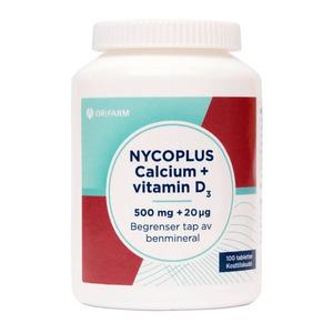 Nycoplus Calcium 500 mg + vitamin D3 20 µg er et kosttilskudd med kalsium og D-vitamin, utviklet for å bidra til å bevare benhelsen og redusere tap av benmineral.