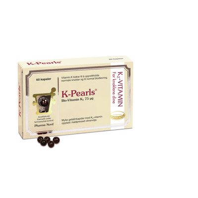 K-Pearls fra Pharma Nord består av små, myke gelatinkapsler med 75 μg ren K2-vitamin (menaquinon MK-7) i hver kapsel. K2-vitaminet er oppløst i kaldpresset olivenolje for å forbedre opptaket i kroppen. Kapslene er små så du lett kan svelge dem, alternativt kan de også tygges.