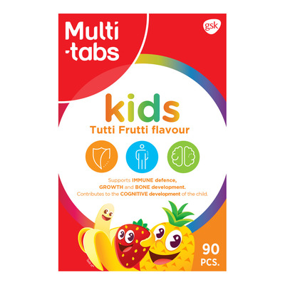 Multi-Tabs Kids Tutti Frutti er et daglig kosttilskudd i form av tyggetabletter, utviklet for barn. Tabletten har en mild, barnevennlig smak og er lett å svelge. Den inneholder vitamin D, som bidrar til normal vekst, og jern, som bidrar til normal kognitiv utvikling.