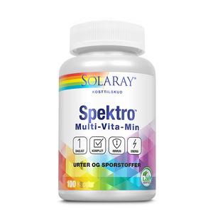 Solaray Spektro Multi-Vita-Min er et kosttilskudd i kapselform som inneholder alle viktige vitaminer, mineraler, sporstoffer og urter kroppen trenger i en unik kombinasjon med en rekke utvalgte urter som er rike på mikronæringsstoffer.