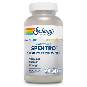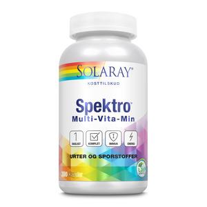 Solaray Spektro Multi-Vita-Min er et kosttilskudd i kapselform som inneholder alle de essensielle vitaminer, mineraler, sporstoffer og urter som kroppen trenger i en unik kombinasjon med en rekke utvalgte mikronæringsrike urter.