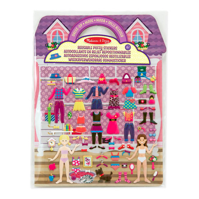 Melissa and Doug Puffy Stickers Dress Up er et kreativt lekesett med gjenbrukbare klistremerker og bakgrunner