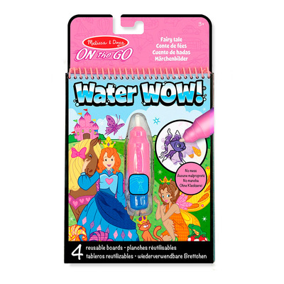 Melissa and Doug Water Wow Adventure er en kreativ fargeleggingsbok med åtte gjenbrukbare sider og en medfølgende vannpenn. Når barna maler med vann, dukker det opp fargerike scener med prinsesser, slott og feer. Når sidene tørker, får de tilbake sitt opprinnelige utseende og kan brukes om og om igjen. Den spesielle røde linsen avslører skjulte detaljer og gjør leken ekstra spennende.