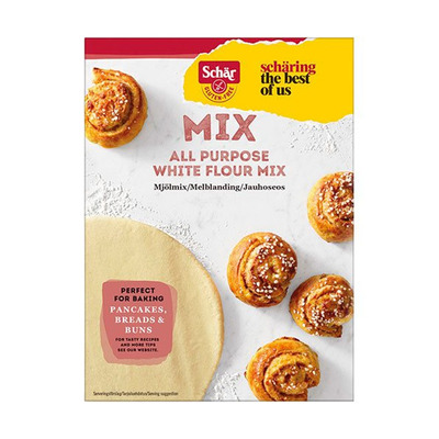 Glutenfri lett melblanding fra Schär med melk kan brukes til vafler, pannekaker, kaker eller brød.