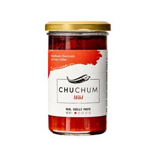 Denne Original Chu Chum Sauce er en mild, aromatisk chilisaus laget av fersk rød chili. Sausen har en mildere styrke som de fleste kan spise. Chilisausen egner seg som krydder, marinade, i supper, dipper og dressinger.