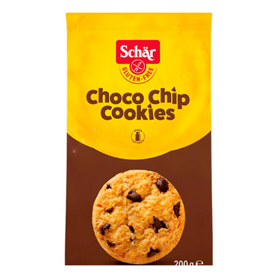 Schär Chocolate Cookies er glutenfrie småkaker med sprø konsistens og små sjokoladebiter i hver bit. De har en klassisk form og en mild, søt smak, noe som gjør at de passer både til hverdag og fest. De kan nytes som et mellommåltid eller til kaffen.