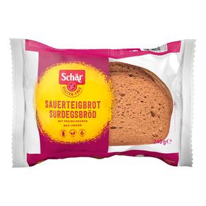 Schär Surdeigsbrød er et glutenfritt, mørkt brød med fast struktur og klassisk form. Brødet er bakt med glutenfri surdeig som gir en mild og avrundet smak. Brødet er skåret i skiver og klart til bruk, noe som gjør det enkelt å servere rett fra pakken eller etter lett oppvarming.