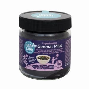 Terrasana Genmai Miso er en økologisk, fermentert miso laget av soyabønner og fullkornsris (brun ris). Den modnes sakte i opptil 18 måneder på sedertrefat, noe som gir en balansert og mild smak med naturlig umami. Genmai miso brukes i varme retter som supper, gryteretter og sauser, men bør ikke kokes for å bevare de aktive enzymene.