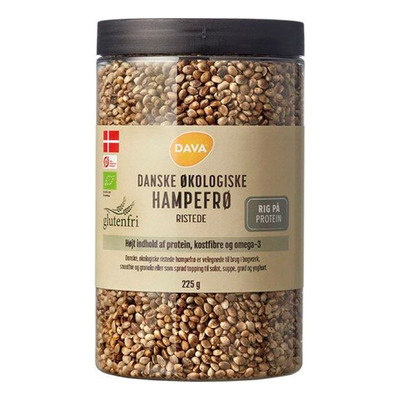 Dava Roasted Hemp Seeds Ø består av danske økologiske hampefrø som er skånsomt ristet for å bevare smak og næringsverdi. Frøene har et høyt innhold av protein, kostfiber og omega-3, noe som gjør dem til et sunt og allsidig valg. De er spiseklare rett fra glasset og kan brukes som et næringsrikt alternativ til andre kornsorter og frø. Frøene passer i mange oppskrifter og tilfører både smak og konsistens.
