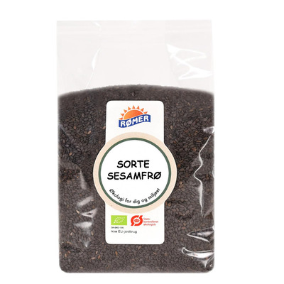 Rømer Sorte sesamsfrø Ø er økologiske sesamfrø med høyt fiberinnhold og mange bruksområder