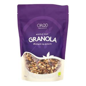 GRØD Whole Nut Granola inneholder hele nøtter, morbær og dadler, og er ristet med vanilje, kokossukker og olivenolje. Granolaen brukes som topping på ulike retter i GRØDs egne restauranter, blant annet rabarbragrøt og havregrøt. Den er laget for å gi en fyldig og mettende smak til frokost eller som mellommåltid. Denne basisgranolaen kjennetegnes av innholdet av hele nøtter og en søt smak fra naturlige søtningsmidler.