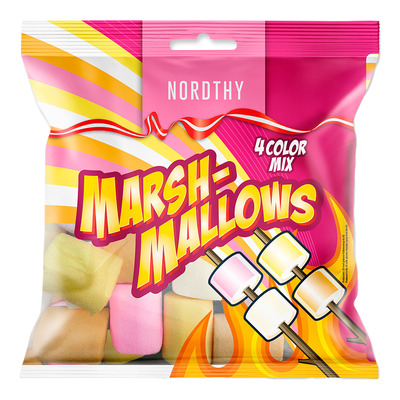 Nordthy Marshmallows 4 Color Mix er myke marshmallows i fire farger med en mild og søt smak
