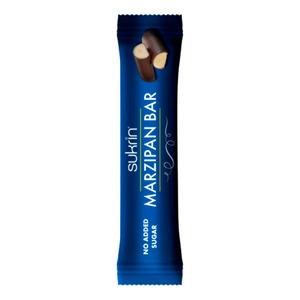 Sukrin Marzipan Bar er et velsmakende mellommåltid uten tilsatt sukker, laget av Sukrin Marzipan og overtrukket med mørk Sukrin sjokolade. Den er naturlig søtet med Sukrin og stevia og inneholder kun 1 gram sukker per bar. Marsipanbaren er et godt alternativ til klassisk konfekt for deg som ønsker mindre sukker uten at det går på bekostning av smaken.