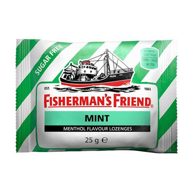 Fisherman's Friend - Mint er en av bestselgerne! Det er en sukkerfri halstablett med en oppfriskende smak av menthol. Den gir deg god ånde og en frisk fornemmelse i munnen.