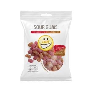 Easis Sour Gums er sukkerfrie vingummier med en frisk og syrlig fruktsmak. De er søtet med maltitol og inneholder naturlige smaks- og fargestoffer. Produktet har et høyt innhold av kostfiber og inneholder 40 % færre kalorier enn tilsvarende sukkersøtede vingummier. Posen inneholder 70 g og er lett å ta med seg som en del av en sukkerredusert livsstil.