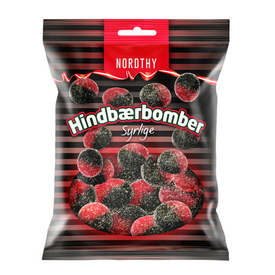 Nordthy Raspberry Bombs er syrlige vingummier med smak av bringebær og lakris