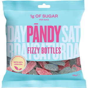 Pandy Fizzy Bottles er en syrlig og helt uimotståelig blanding av rosa og blå vingummiflasker med forfriskende tyggegummismak. Pandy Candy finnes i mange forskjellige smaker.