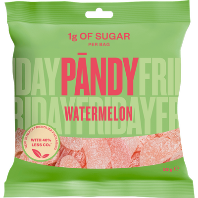 Pandy Watermelon er en syrlig vingummi med frisk smak av vannmelon. Pandy Candy finnes i mange forskjellige smaker.