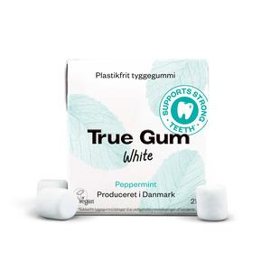 True Gum White er sertifisert vegansk. Denne tyggegummien er utelukkende laget av ingredienser fra planter og trær. Denne varianten har en herlig peppermyntesmak.