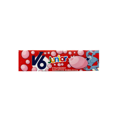 Denne pakken med velsmakende, sukkerfri tyggegummi blir garantert en hit hos tyggisglade børn! V6 Junior Bubblegum Strawberry har en god smak av jordbær, som de fleste barn vil kunne like, og er dessuten gøy å lage tyggegummi-bobler med.