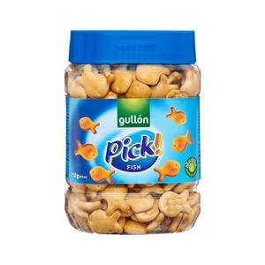 Saltkjeks formet som små fisk, pakket i en plastboks