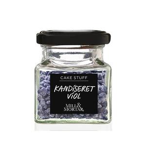 Sukker, Viol blomsterblade 2 %, Konsistensmiddel E412, Farvestoffer E120, E132, Aromaer