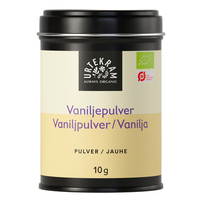 Urtekram Økologisk vaniljepulver er laget av 100 % rene, økologiske vaniljebønner som er tørket og malt til et fint pulver. Det har en dyp, aromatisk og naturlig søt smak som gjør det ideelt til bakverk, desserter, smoothies og varme drikker.