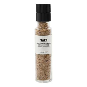 Tomat, parmesan og basilikum utgjør en spennende smakskombinasjon i denne lekre saltblandingen fra Nicolas Vahé, og gir til sammen en lett rødlig farge og fantastisk smak. Saltet egner seg godt til å drysse på smør, tomatsalat, fisk, kjøtt og ikke minst på pasta. Den smarte og dekorative saltkvernen er perfekt til å ha stående fremme i kjøkkenet eller på spisebordet. Prøv også de andre saltblandingene fra Nicolas Vahé, som du kan kjøpe her hos Med24.