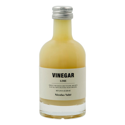 Nicolas Vahé Vinegar Lime er produsert i Europa og kommer i en dekorativ glassflaske som tar seg godt ut på kjøkkenet. Den har en balansert syrlighet og er lett å dosere. Bruk den i det salte kjøkkenet eller eksperimenter i søte oppskrifter der syrligheten kan balansere smaken.